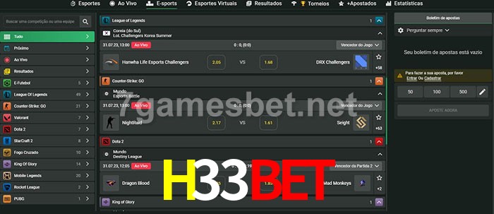 O H33Bet oferece uma grande seleção de opções de apostas em e-sports com probabilidades competitivas